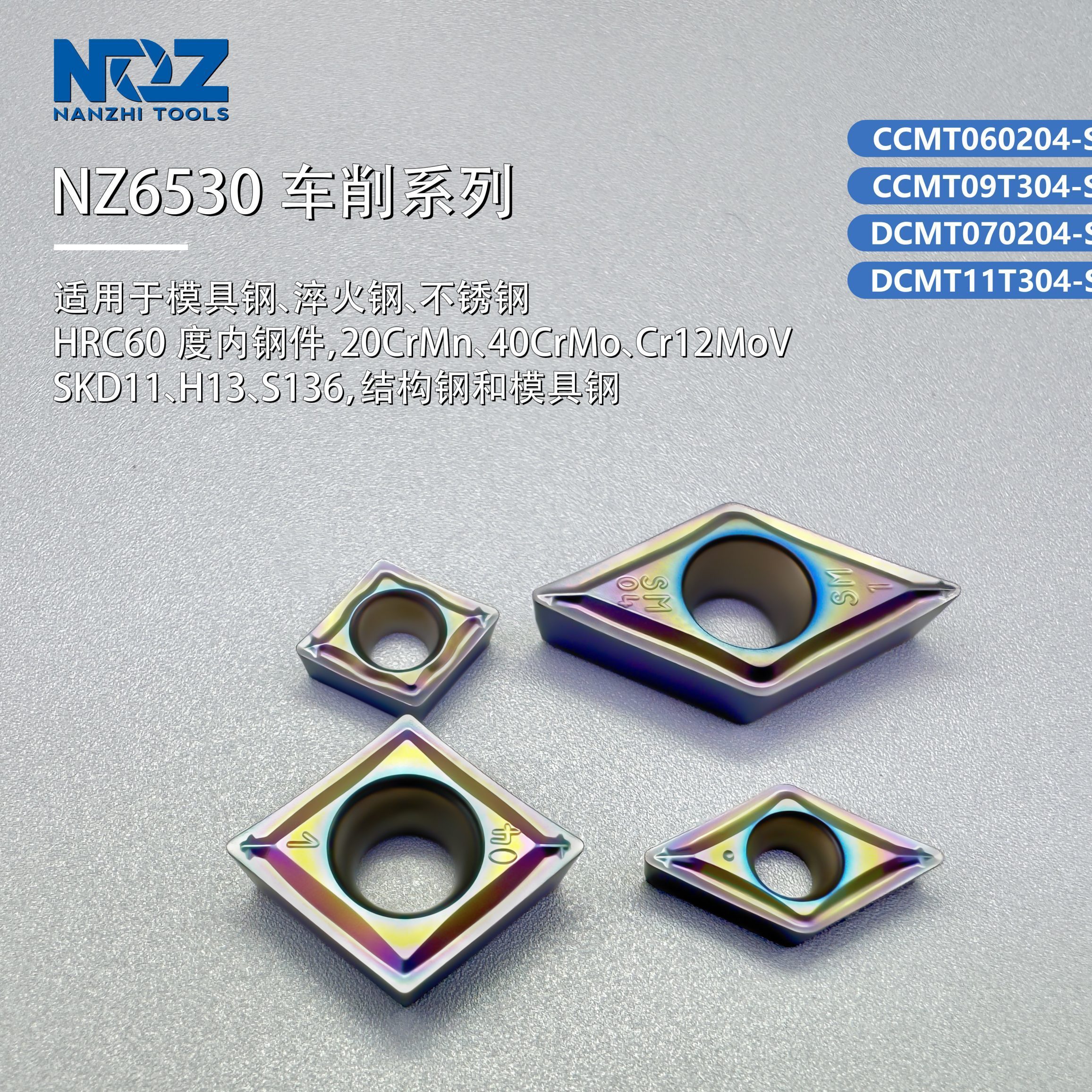 NZ6530: 3μm Multi-Color PVD (36GPa), For 40-60 HRC Mold/Stainless/Hardened Steels